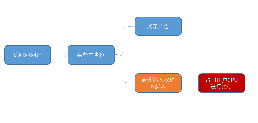 广告位插入挖矿JS过程简图: