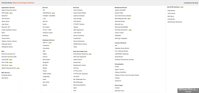 下面这张截图显示了使用Application Manager你可以跟踪、管理的各项产品应用等。我知道如何从数据库或是linux系统中获取信息,但是如何从MS Office SharePoint或是Microsoft Lync中获取呢?我不会通过直接运行powershell命令或是vbs脚本的方式来实现,但并不表示大多数的开发者都会像我一样。