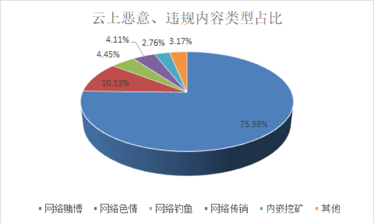 结合金山毒霸在端上的恶意站点感知数据,以及威胁猎人采集的黑灰产活动数据,我们发现,除了前述各类网络攻击威胁外,公有云厂商还面临较严重的云上内容合规问题:大量恶意、违规网站利用公有云部署便捷、性价比高和防护能力强的特点,在公有云上搭建并对外开展网络赌博、网络色情、网络钓鱼、网络传销、内嵌挖矿等非法活动。