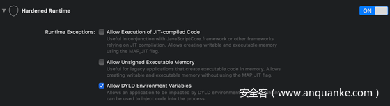 有趣的是,即使我在capabilities页面设置了com.apple.security.cs.allow-dyld-environment-variables entitlement,我也无法使用其他签名加载dylib。我不确定我在操作上是否出现了问题。