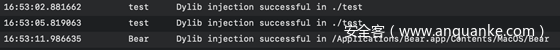 $ DYLD_INSERT_LIBRARIES=inject.dylib /Applications/Bear.app/Contents/MacOS/Bear