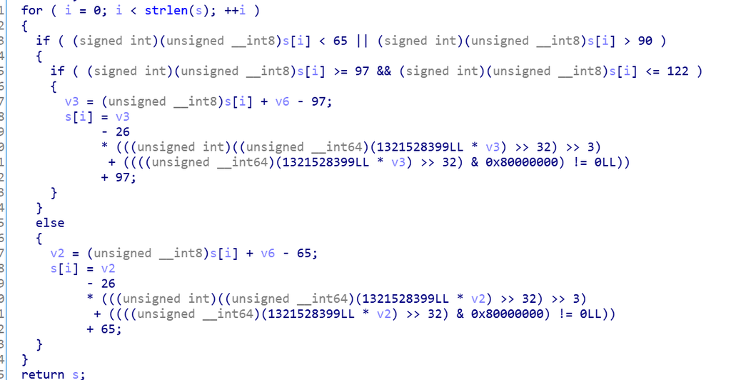 使用C语言复现该加密算法,得到正确的flag为:kqfl{BjQhtrj_yt-XBUZ}}
