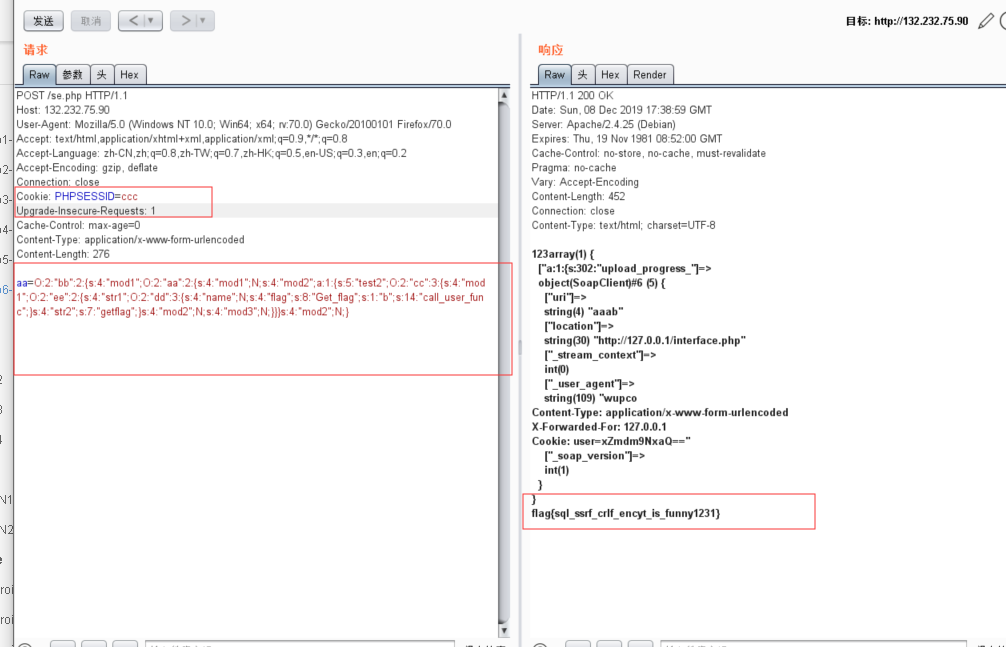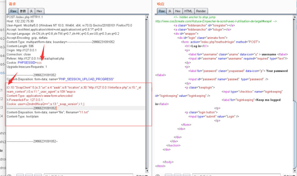 此题是关于session 的反序列化,session默认以序列化格式存在数据库中,如果能控制session的值,那么我们就能控制反序列化过程。6379 端口redis数据库弱口令:password。
