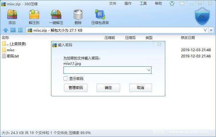打开压缩包发现有一个加密过的文件夹跟密码.txt