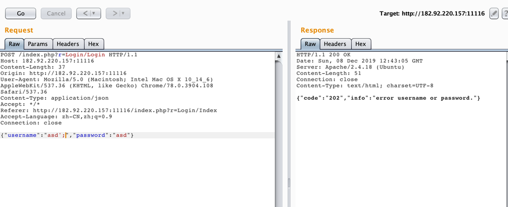 不难发现,username中加入单引号会直接500错误,而闭合引号后会正常显示。因此可大致确定注入存在,随后开始构造payload。由于题目对username进行了严格的检测,所以无法使用单语句进行注入,但是注入点又存在,于是可以尝试进行堆叠注入。(很多师傅可能就因为不友好的回显卡在这里)
