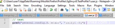 这里最明显的一种方法,就是在user.js首选项文件中通过general.config.filename选项来引用AutoConfig文件。