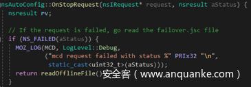 此外,当我们分析外部autoadmin文件的使用场景后,我们还可以找到其他入口点文件。首先,在下载完autoadmin文件并且该文件被成功执行后,文件内容会被拷贝到(用户配置目录的)failover.jsc文件中。在如下场景中,该文件会被当成AutoConfig文件来执行: