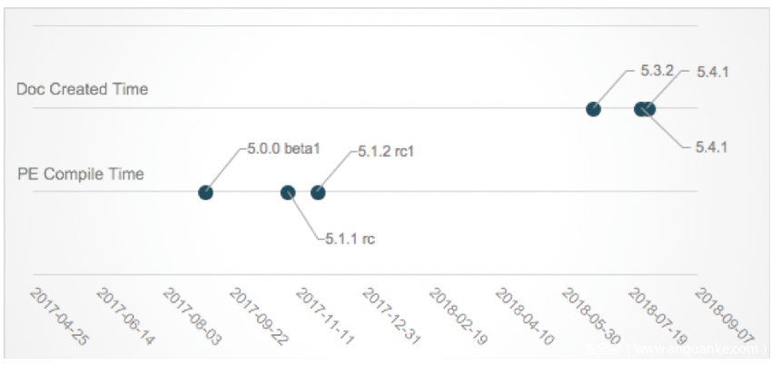 下图显示了UPPERCUT的更新时间表。在图中绘制了加载器的PE编译时间和dropper的创建时间(Word文档)。由于时间戳被覆盖并用零填充,使用这里没有显示新版本中的加载器的编译时间。