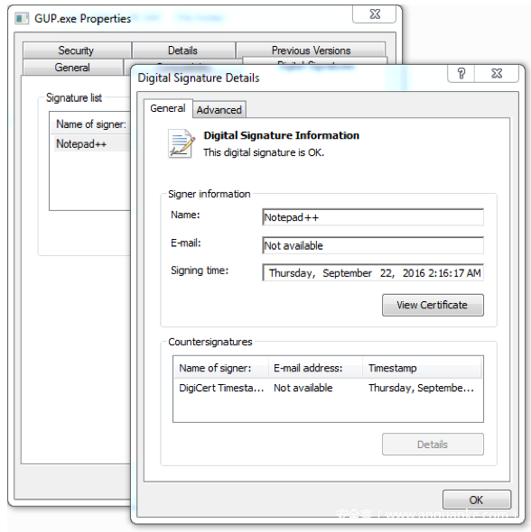 GUP.exe:GUP,一个免费的(LGPL)通用更新程序。GUP是Notepad ++用于软件更新的开源二进制文件。这里使用的版本是由Notepad ++进行数字签名的4.1版本:
