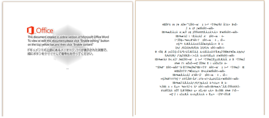 在邮件中被传递的文件是Microsoft Word文档,其中包含了恶意VBA宏。虽然恶意文件的内容不可读,但标题与海事,外交和朝鲜问题有关。