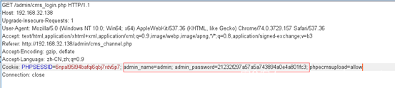 我们在非登陆状态,然后直接访问admin文件夹下面的cms_channel.php,然后填充Cookie
