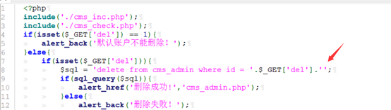 看到第三行,这里有个SQL语句,然后似乎del语句本身的传参,就没有引号,我们是不是可以直接SQL注入?