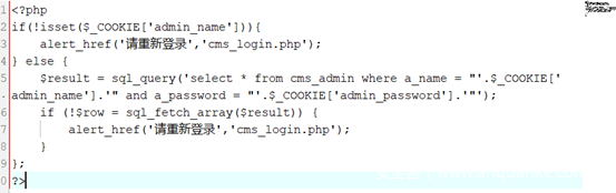 他原本每个文件都会包含./system/safe.php 这个文件,现在进入后台居然不再包含,而去包含cms__check.php。说明什么?安全问题的本质是什么?是信任,这里很明显是因为登陆后台的就认定为管理员,然后开发信任管理员,将安全机制给去除了一部分。