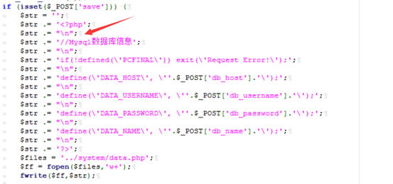 然后开始细细读取代码,发现我们填入的数据会直接写入/system/data.php