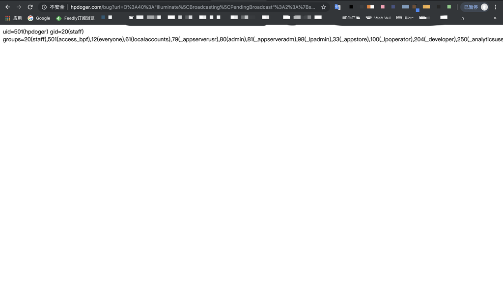 只不过是没有回显,需要我们可以外带出去,这里调试的结果成功执行system获取whoami为hpdoger