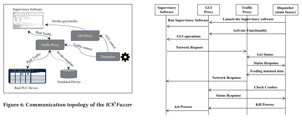 没有直接分析提取协议实现(因为十分困难),而是直接在同步控制GUI操作以及网络通信的情况下,直接运行和fuzz对应的supervisory software。