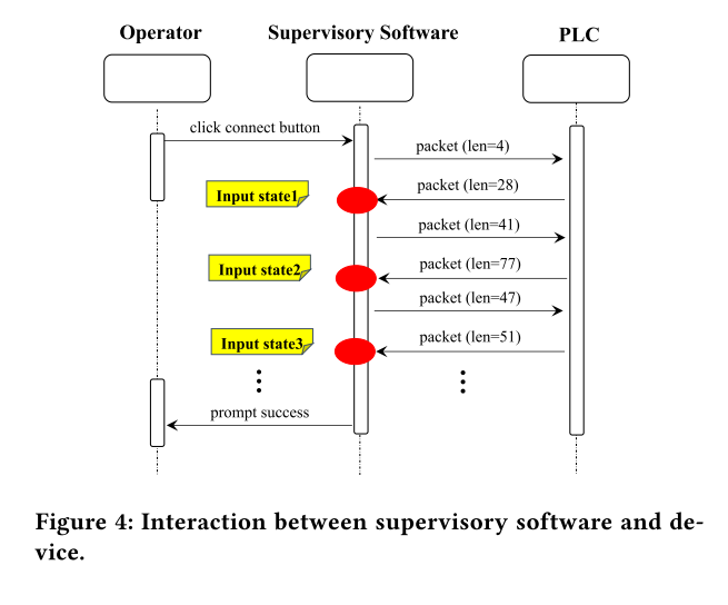Supervisory software在不同的interaction states时往往有着不同的行为(code execution),Supervisory software的交互状态本质上是与PLC设备进行交互的特定的程序上下文;交互状态取决于几个因素,包括之前的按钮操作、之前的input states等。Supervisory software的实现与GUI接口是高度耦合的。