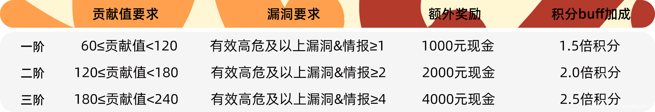 每季度为周期,无任何活动的情况下,奖励最高2.5倍buff加成+额外升级奖励7000元+季度末惊喜抽奖。
