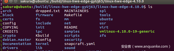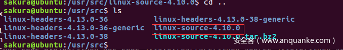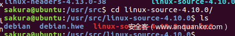 解压缩得到源码sudo tar -xvf linux-source-4.10.0.tar.bz2