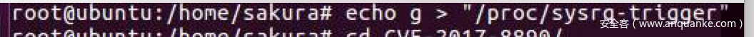 然后输入sudo su && echo g > "/proc/sysrq-trigger"