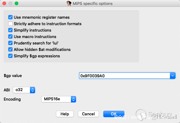 并且修改在Options -> General -> Analysis -> Processor specific ……设置$gp=0x9F0039A0