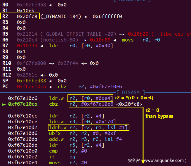 link_map是在libc中的,不过地址存在了程序中的GOT段,主要关注这个reloc_arg,那三行有关r1的指令,实现的是r1 = 2 *(puts@got - (GOT +8) - 4),值就是0x28