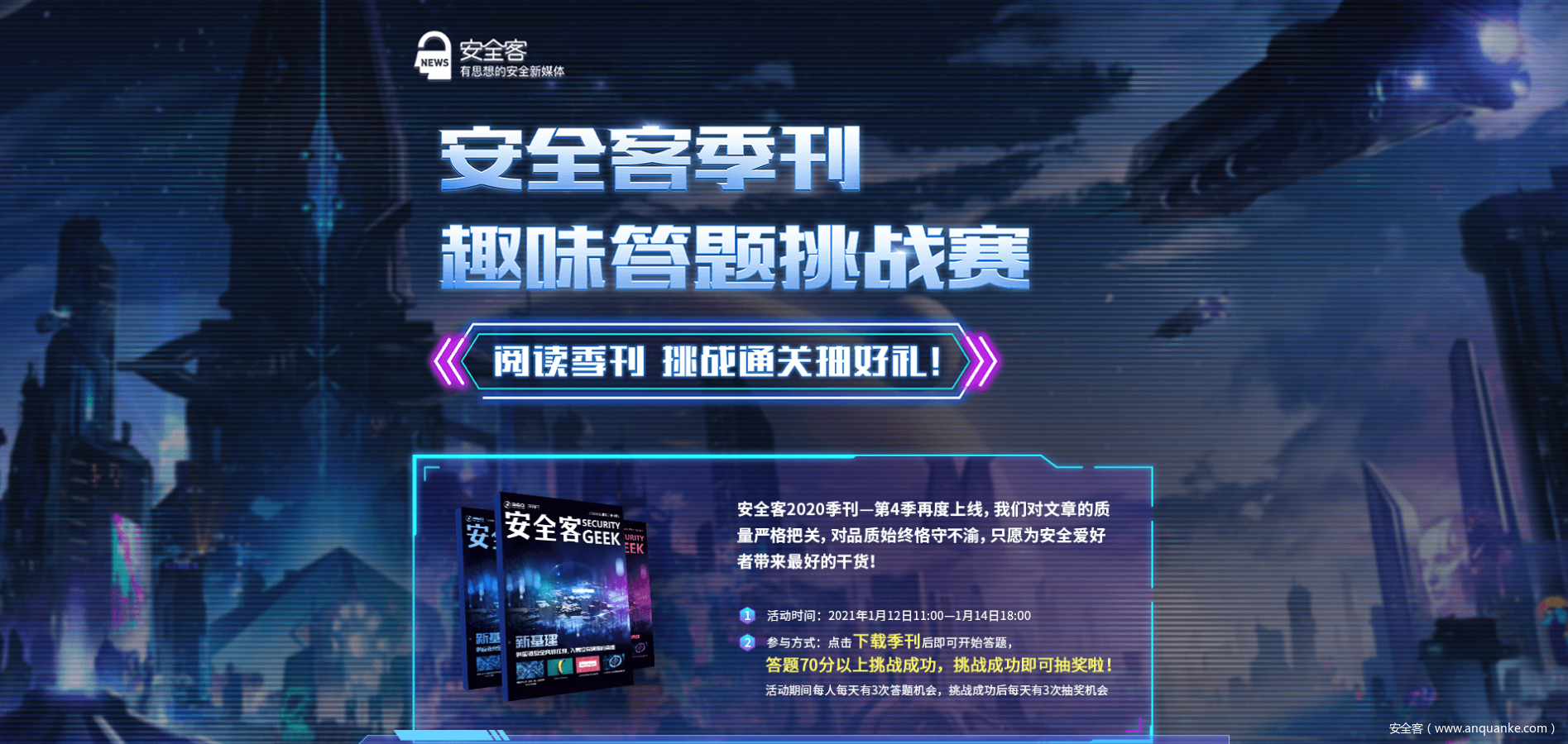 安全客Q4季刊圆满结束,小安和各位用户师傅们一起度过的开心时光,又增加了一个季度。