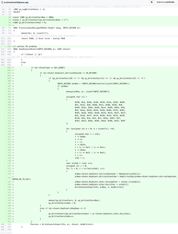 ConEmu当中的这样一道题目是,在ConEmuCD动态库模块中,将恶意代码植入到Queue.cpp文件中,影响终端中在远程网络会话中,输入控制的环节,恶意代码存在于SendConsoleEvent函数:
