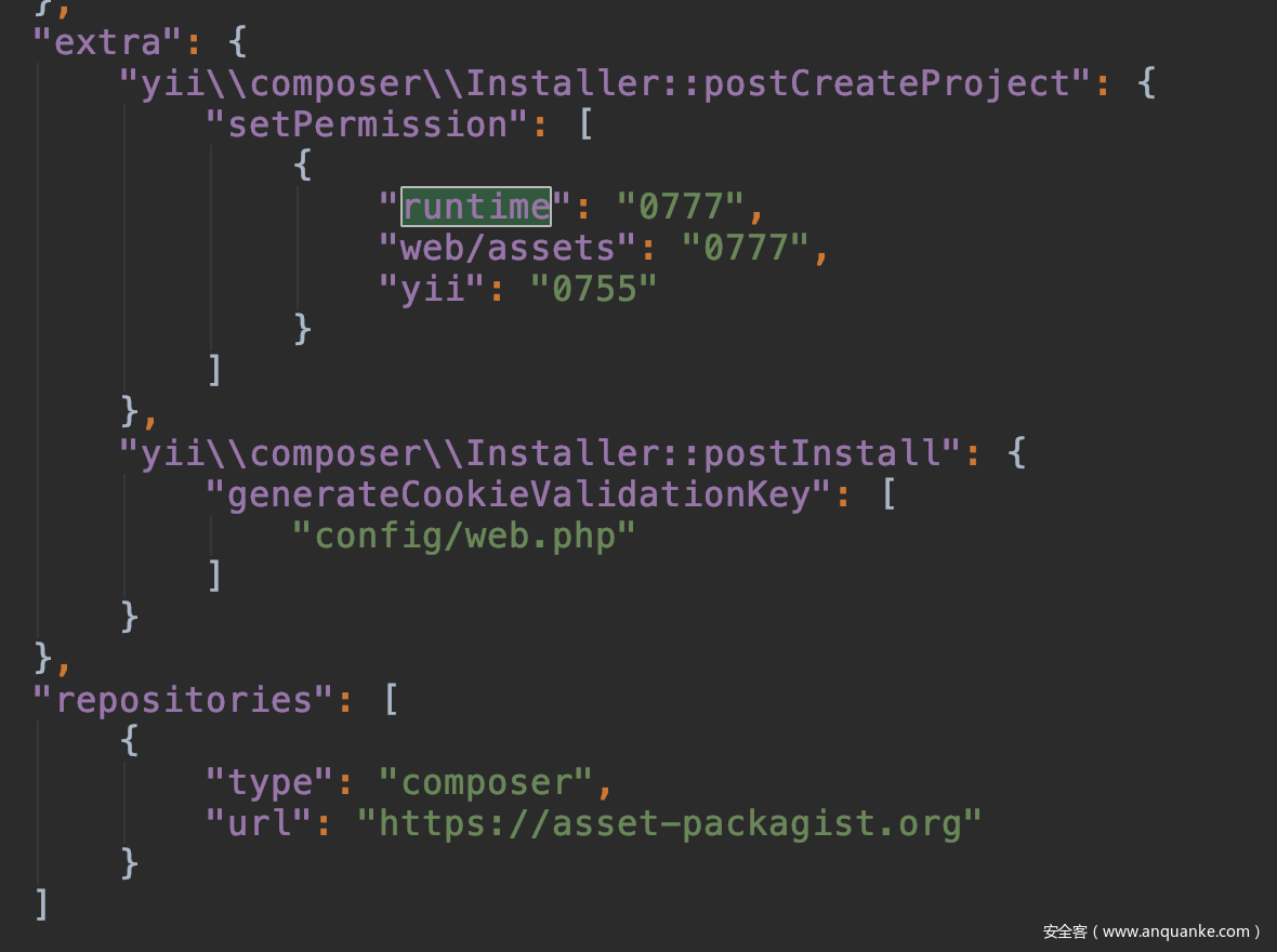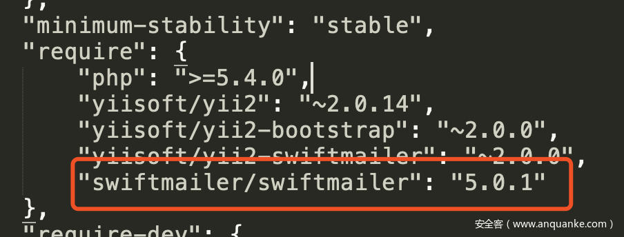 寻找可利用类,查看composer.json,发现存在RCE漏洞组件