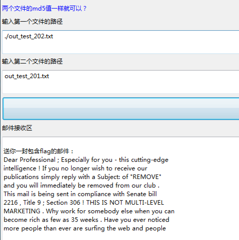 发现是hello,提交通过第一关,第二关是一个md5碰撞,我们使用github的项目