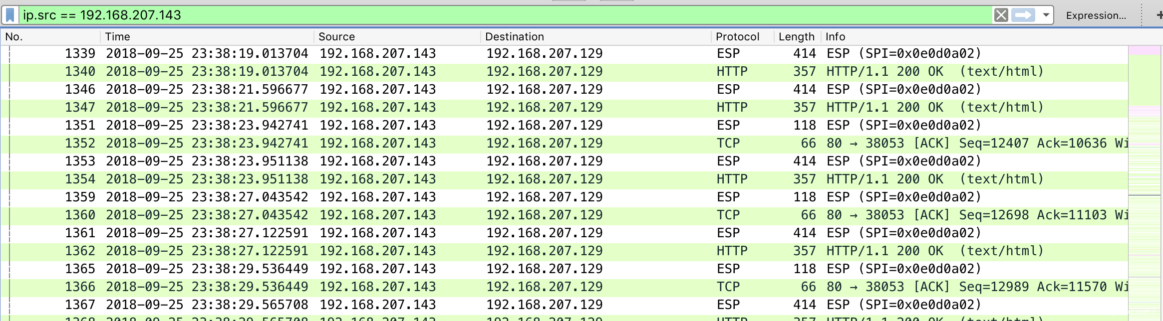 发现都是IPSec加密后的流量,尝试使用wireshark和前面的信息进行还原