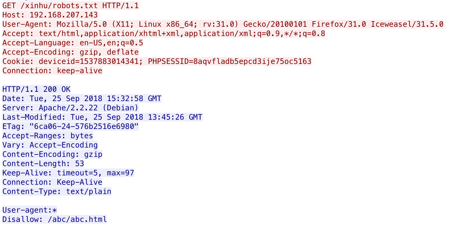 发现robots.txt,进一步分析发现robots.txt,发现存在abc.html