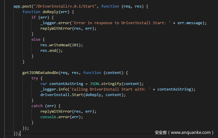 接下来考虑如何执行我植入的文件,此时我忽然灵光乍现,GFE本身是驱动下载安装一气呵成的,WebHelper既然提供驱动下载API,那么很可能也有驱动安装相关的API,而驱动安装就涉及到执行下载后的文件,于是马上回到WebHelper的js源码,看到一个名为DriverInstallAPI.js的文件,在里面发现驱动安装的API,如下图: