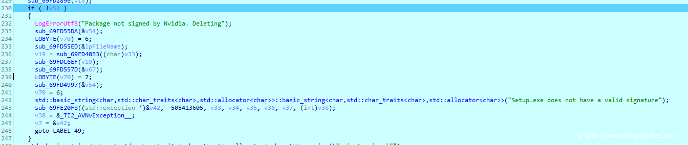 在相应位置下断点,Attach到WebHelper进程,使用新构造的POC来看看,然而会发现并没有命中断点,所以往前追,发现了如下的签名检查,我自己的exe自然是通不过检查的: