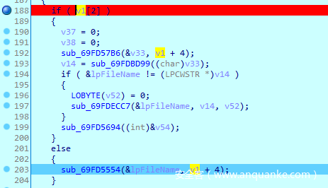 接下来想想办法绕过签名检查,我继续往前追,可以发现其实在签名检查之前也有一次调用sub_100042CD的机会,只需要想办法使v1[2]不为0就可以了: