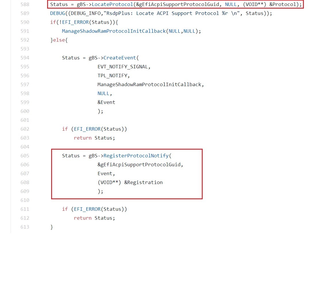 隐含地假设请求的协议已经被安装。在这种情况下,调用模块可能甚至都不会检查返回的接口指针的有效性,一旦试图去引用它就会崩溃。尽管这看起来像是一个bug,但事实上,有时UEFI模块有非常令人信服的理由来相信其他模块在启动过程中已经提前执行了。因此,它们可以从逻辑上推断出某些协议应该已经可用。关于这个话题的更多细节将在本系列的第四篇文章中加以介绍。