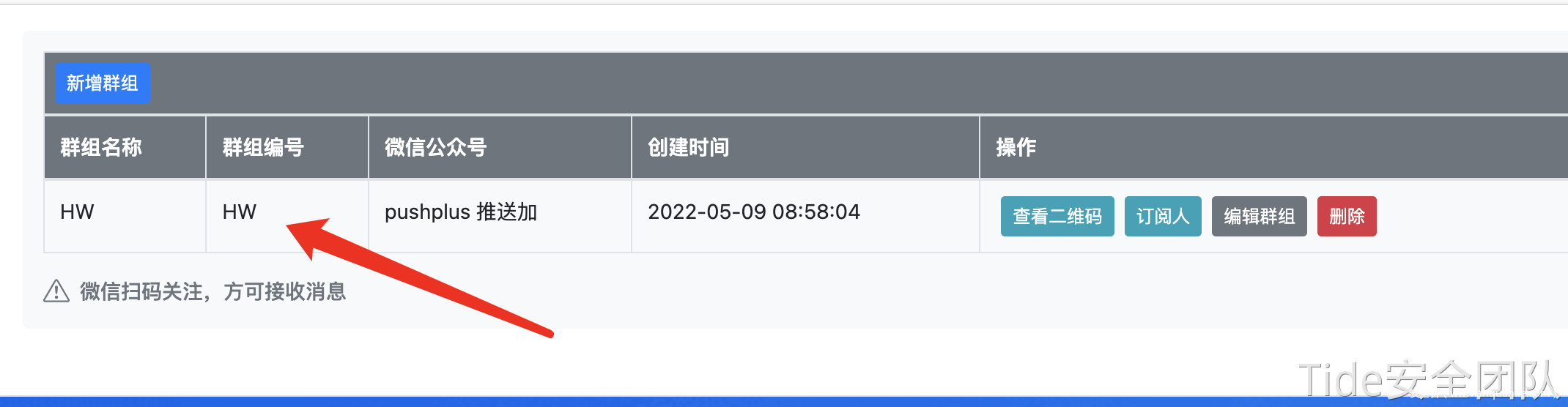 配置完成后,需要点击查看二维码进行订阅进入群组,包括创建人也是要扫码才能够进入群组的。