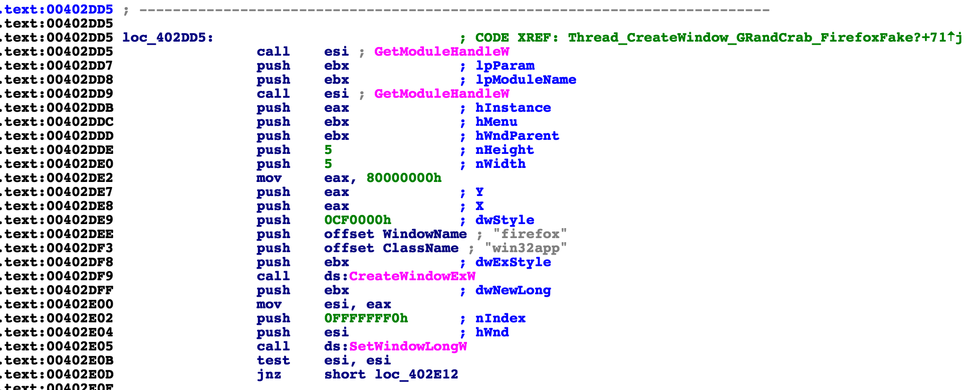 以上功能有点奇怪,虽然恶意软件会通过上述流程实现本地持久化目的,但同时也会第一时间创建一个窗口。从我们的角度来看,创建窗口对其本身任务而言没有任何好处。作者这么做可能只是想实验一下,真实的意图我们仍然不得而知。