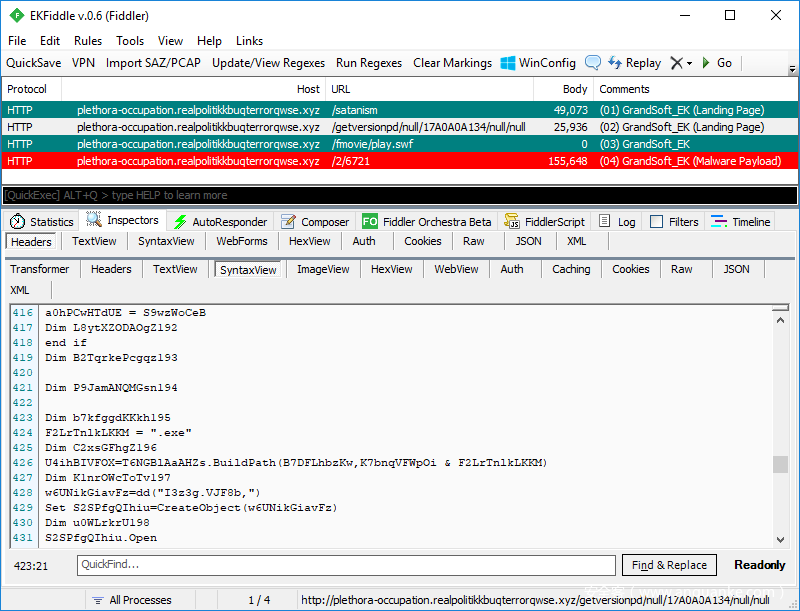 这款Exploit Kit年代已经比较久远,并不常见,人们曾经认为它已不再活跃。然而事实证明攻击者也用到了这款工具包来传播GandCrab。