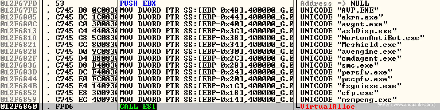 为了后续加密过程能顺利进行,恶意软件会遍历内置的一份进程列表,结束该列表中存在的进程。对勒索软件而言,这是一种常用的技术,可以终止某些进程,避免某些文件被锁住而无法加密。