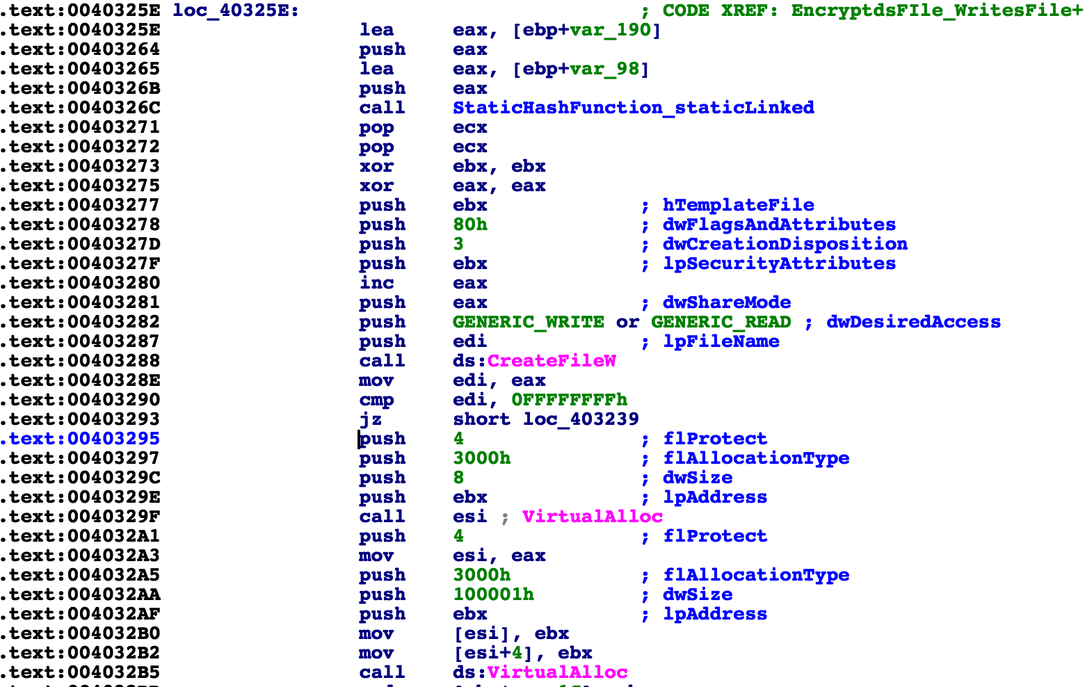 恶意软件的代码流内部关联度比较高,因此从逆向分析工程角度来看,即使只用反汇编器来静态分析这个样本,我们也能得到比较准确的分析结果。程序代码可以分成3个主要部分:初始化部分(initialization)、网络部分(network)以及加密部分(encryption)。