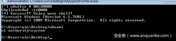 printf("[!] Error with DeviceIoControl: %d\n", GetLastError());