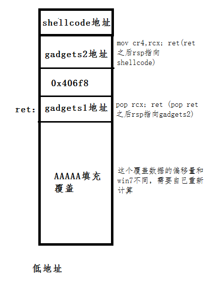 我们如何绕过,类似dep,我们在执行shellcode之前,先修改cr4将其smep位写0。这就需要rop技术。