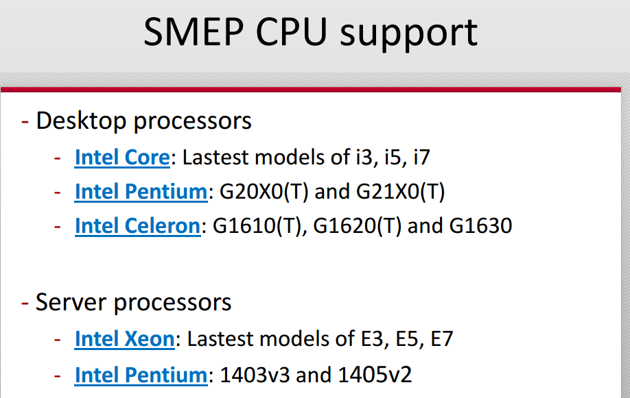 在介绍SMEP绕过之前,我先讲下我遇到的坑。第一要确定自己的cpu是否支持SMEP。