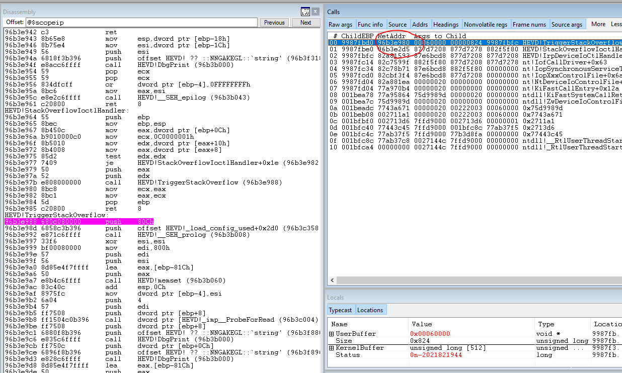 Windbg下断点 bp HEVD!TriggerStackOverflow