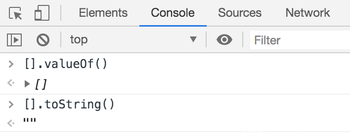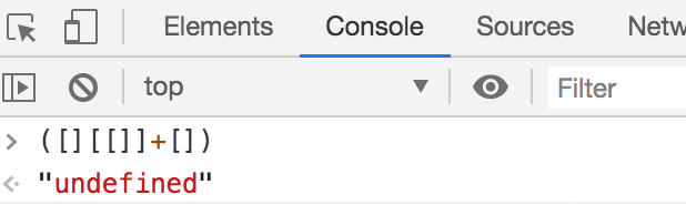 先来看第一个分解的JS([][[]]+[]), 在()内[]的优先级高,会先处理,控制台执行看一下